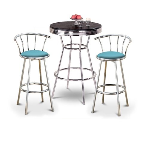 CHECK  BEST DEALS COMPARE PRICES & SPECIAL DISCOUNT ABOUT Chrome Bar Table & 2 Chrome 29" Baby Blue Vinyl Seat Barstools